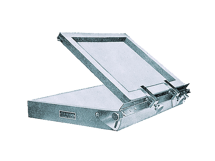 - 校正刷りから量産まで可能、バキューム付テーブル型手刷印刷機。
